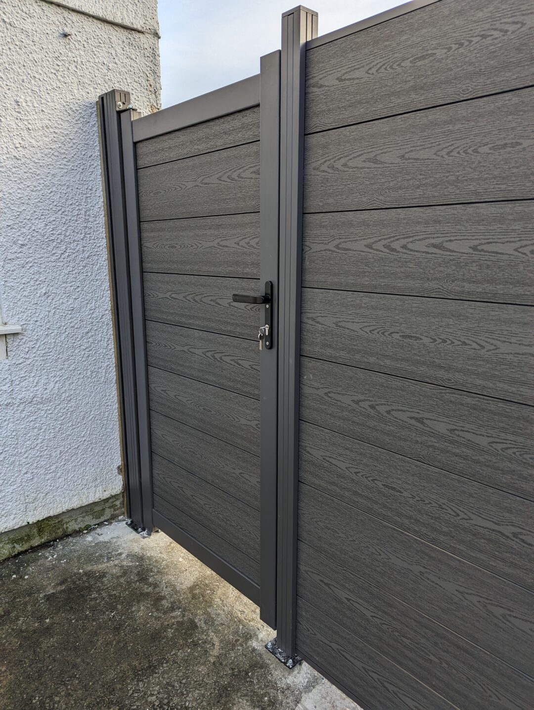 You’ll receive 1 composite gate, 2 hinges, a set of handles, a euro cylinder lock, a latch, and 3 keys.
